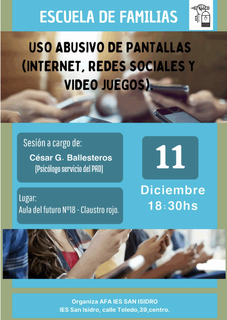 En ella, nos ofrecerán pautas prácticas y orientación sobre cómo actuar ante posibles señales de uso problemático o abuso de pantallas.